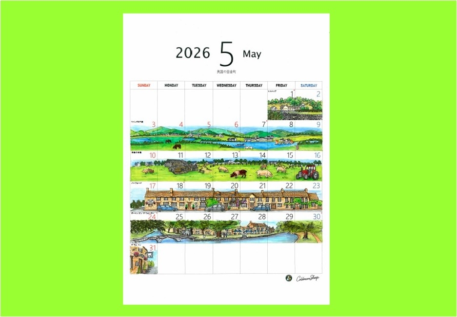 5月のテーマは英国のコッツウォルズ地方の田舎町です。コッツウォルズとは「羊の丘」という意味で、羊毛の交易で栄えていました。