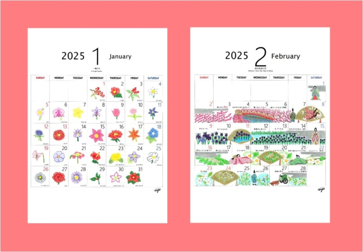 表紙もとても素敵です。刺繍もすばらしい。2025年も一年間楽しみにカレンダーをめくります。