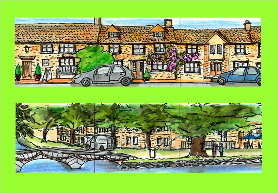 黄色みを帯び「蜂蜜色の石」「ライムストーン」とも称される石灰岩「コッツウォルズストーン」。この石を使った建物群が特徴的な景観をなしています。