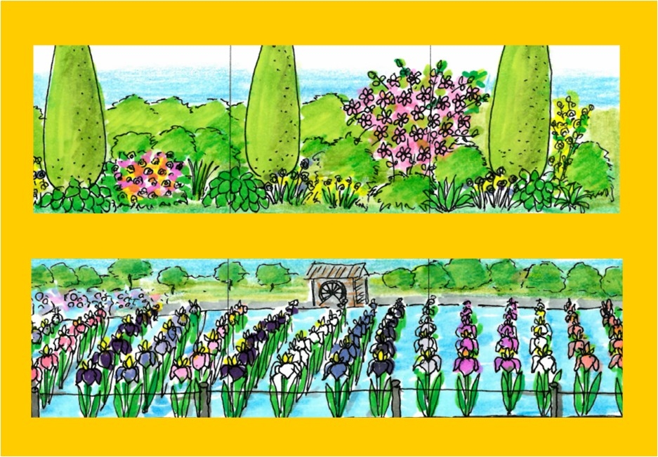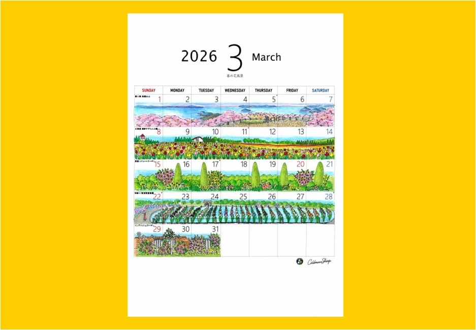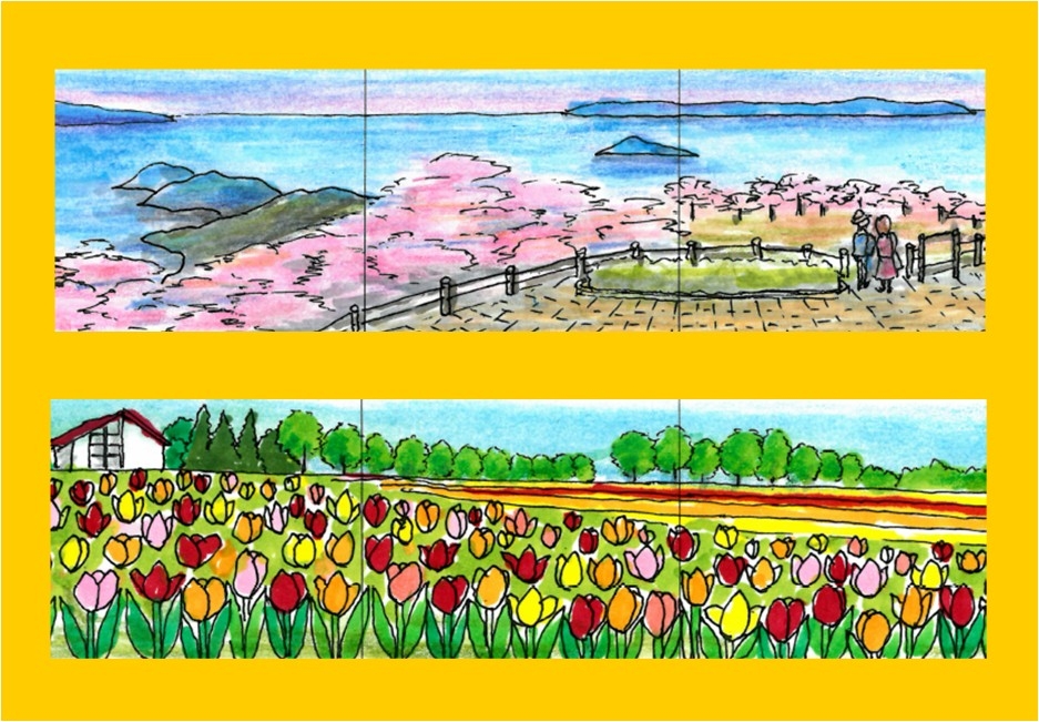 3月のテーマは春の花風景。私が訪れた地の花の風景を描きました。