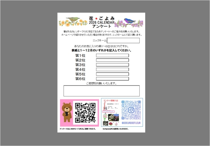 このアンケートは来年のカレンダーづくりのためにも活用させていただきます。