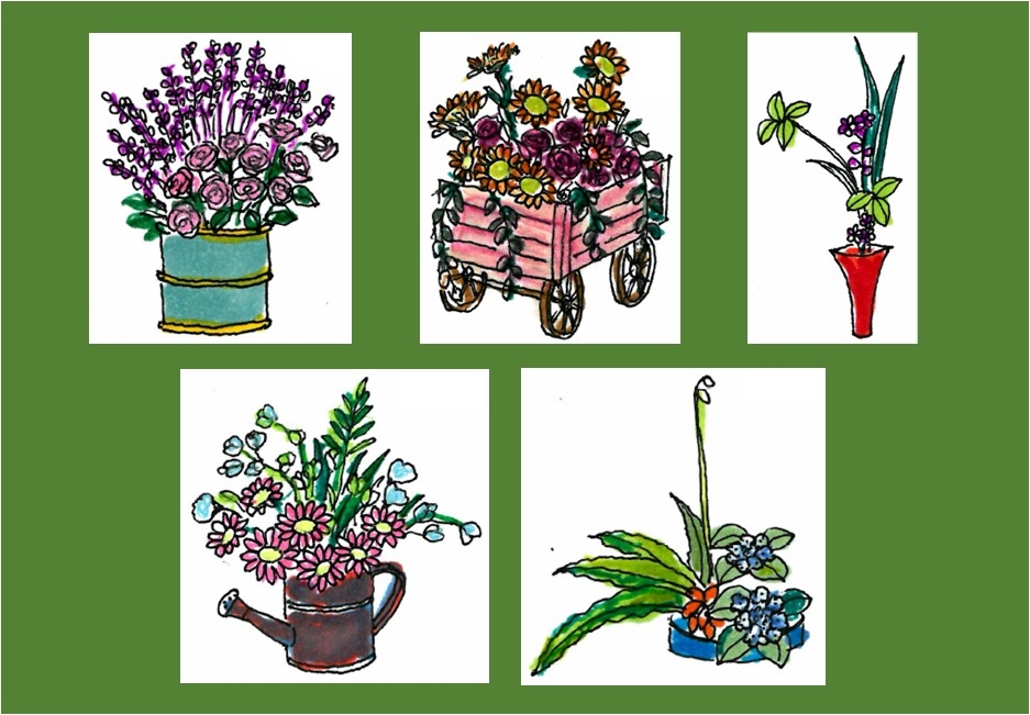 9月のテーマはいけ花・フラワーアレンジメントです。花のいけ方はいろんな技法がありますね。