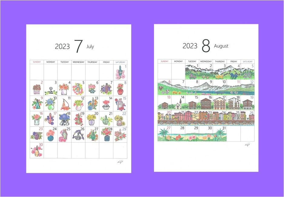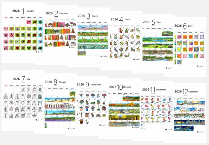 どの絵も細かく描かれていて驚きました。特に四国がテーマの月は親近感があり、絵も大きくて見ごたえがあります。在住者でない人も旅行気分になれるので、いろいろな地域を描いてほしいです