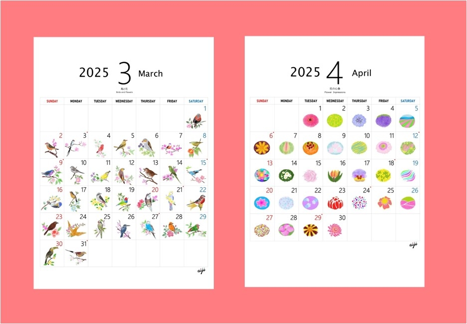 2025年のカレンダーは一段と素敵になりましたね。どの月も素敵なので順番を付けるのが難しかったです。3月(鳥と花)は鳥の名前と花の名前、両方とも知りたいと思いました。
