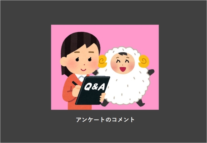 アンケートのご感想はホームページで紹介させていただくことがありますので、ペンネームでの回答をお願いします。本名は書かないでください。