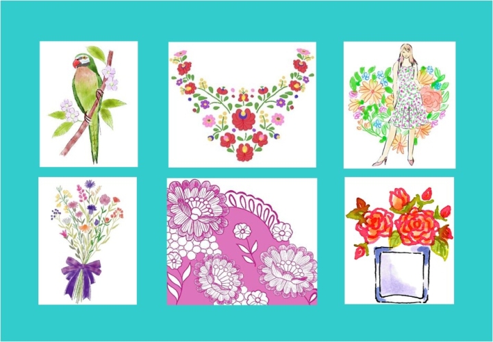 描くのに苦労するテーマですが、花柄ファションのエレガントさをお届けできればと思っています。