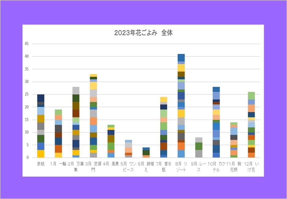 今年は当月テーマの記載があり解りやすい。四国の庭園や動きのある画、それに歴史や文学をモチーフにして、それが斬新。カクテルやモノクロのいけ花はNEWで、上位にランク付けとなりました。